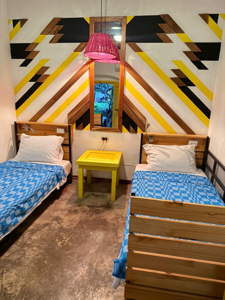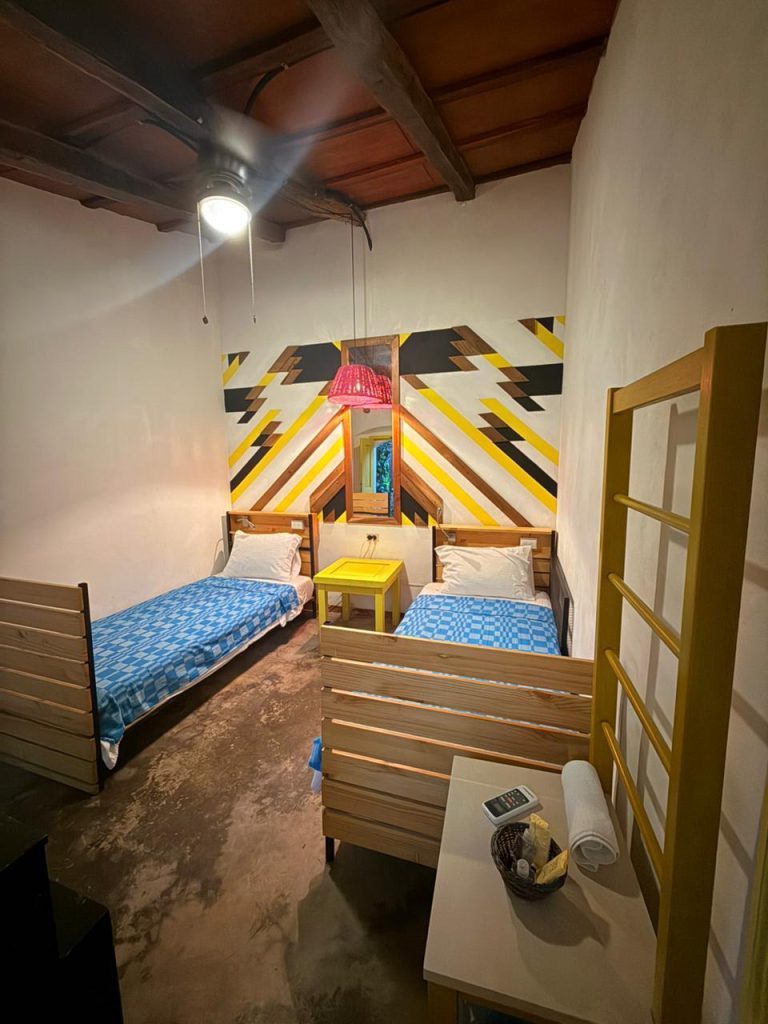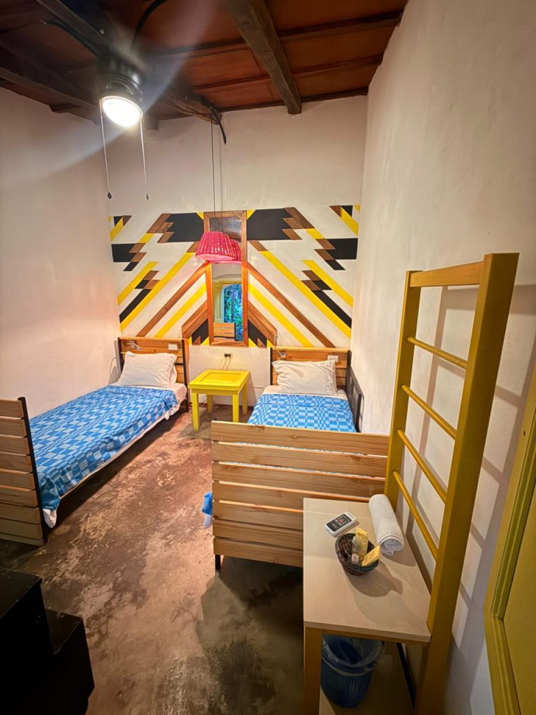 Esta habitacion cuenta con dos camas sencillas y su equipo de A/C. La habitacion cuenta con un baño externo pero exclusivamente para sus huepedes. Todas las habitaciones privadas incluyen desayuno.